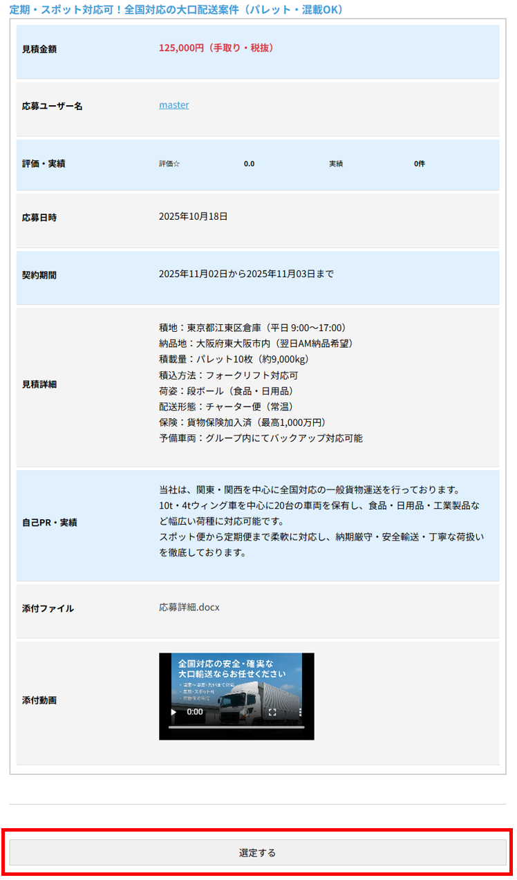 案件表示ページから「応募する」をクリックすると、案件応募ページが表示されます。できるだけ詳しく記入したほうが、応募内容を理解してもらいやすく、選定される可能性が高まります。また、文字だけで伝わりにくいことは、画像やPDFを添付したり、スマホで撮影したショート動画(1分まで)を投稿することで、応募の内容をスムーズに表現することができます。